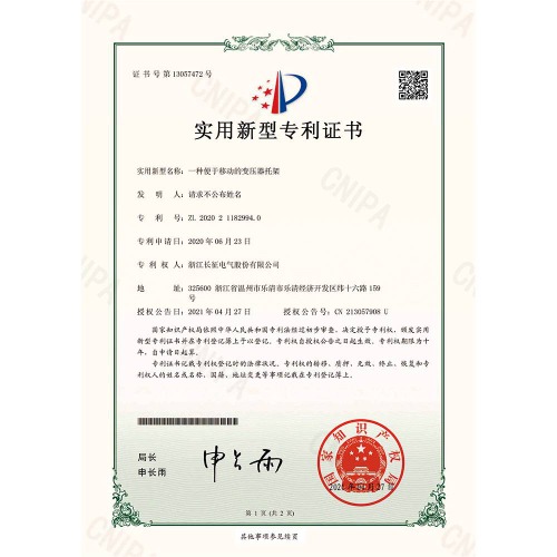 一种便于移动的变压器托架 实用新型专利证书