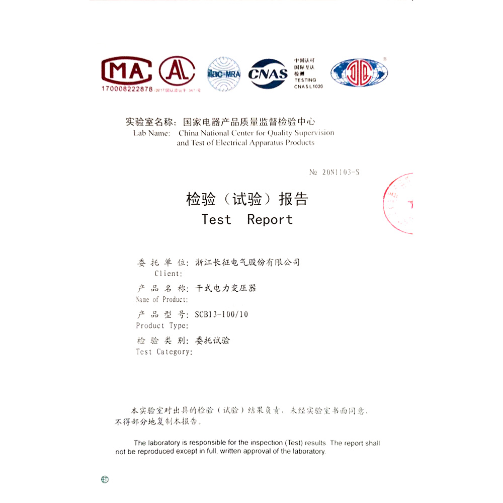 SCB13-100/10干式电力变压器 检验报告