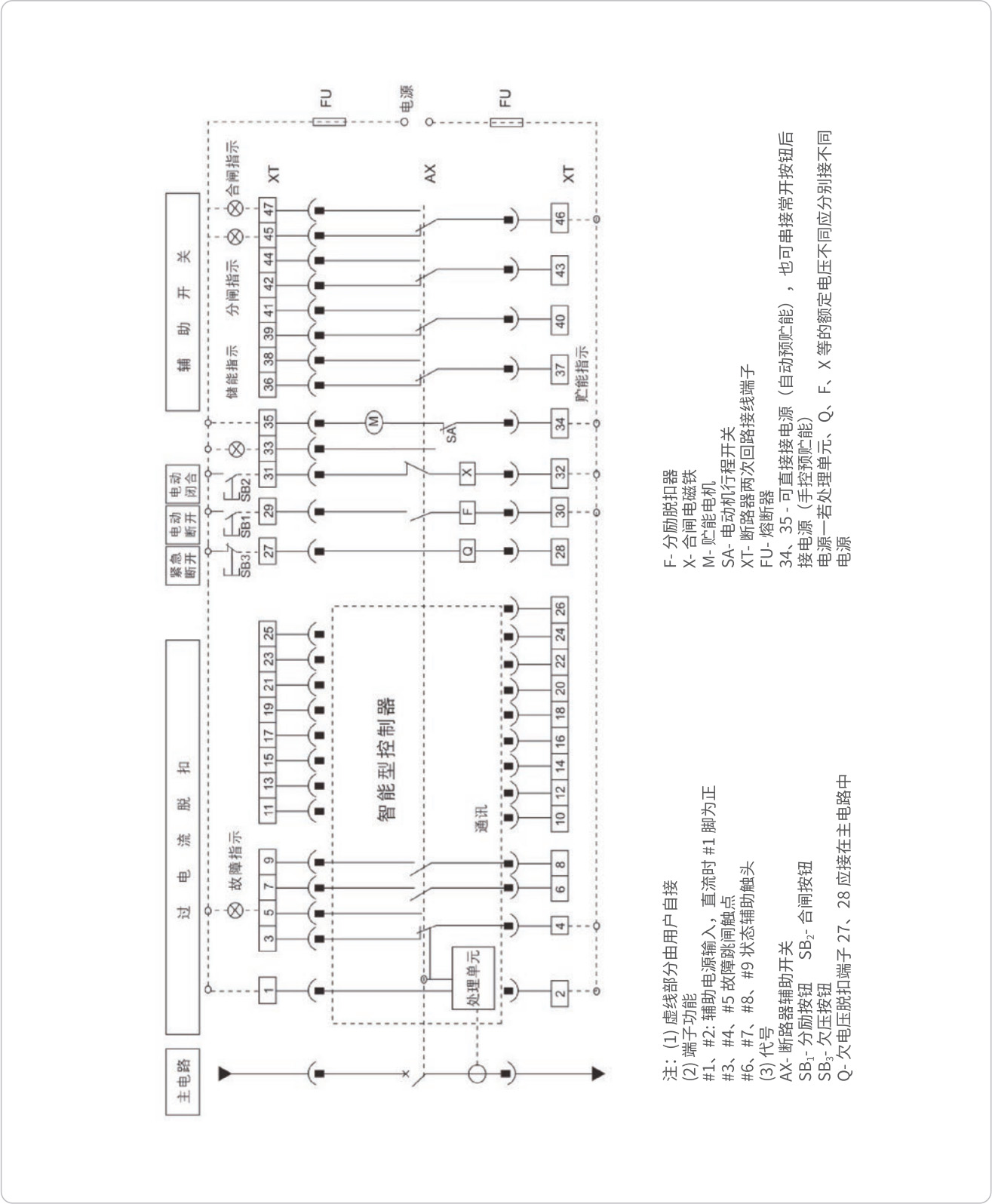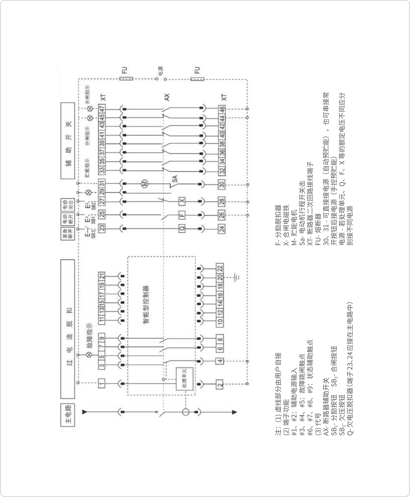 ◇ 配 2M、2H 智能控制器的断路器二次回路接线图(辅助开关由四组转换触头组成)