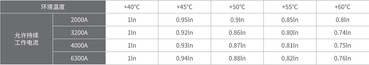 注:周围空气温度与允许持续工作电流关系(在各种环境温度下,实测断路器进出线端温度达到 110℃为基准)。
